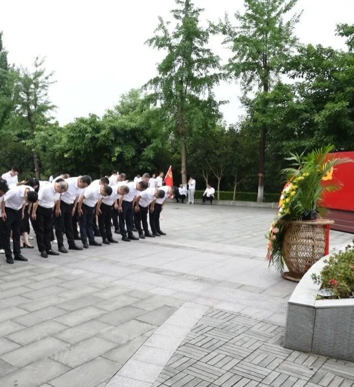 在红军将士英名纪念碑前,全体党员向革命先烈敬献花篮、深深鞠躬,并在党总支书记李尤同志的带领下大家面对鲜红的党旗,高举右手,再次许下铮铮誓言。