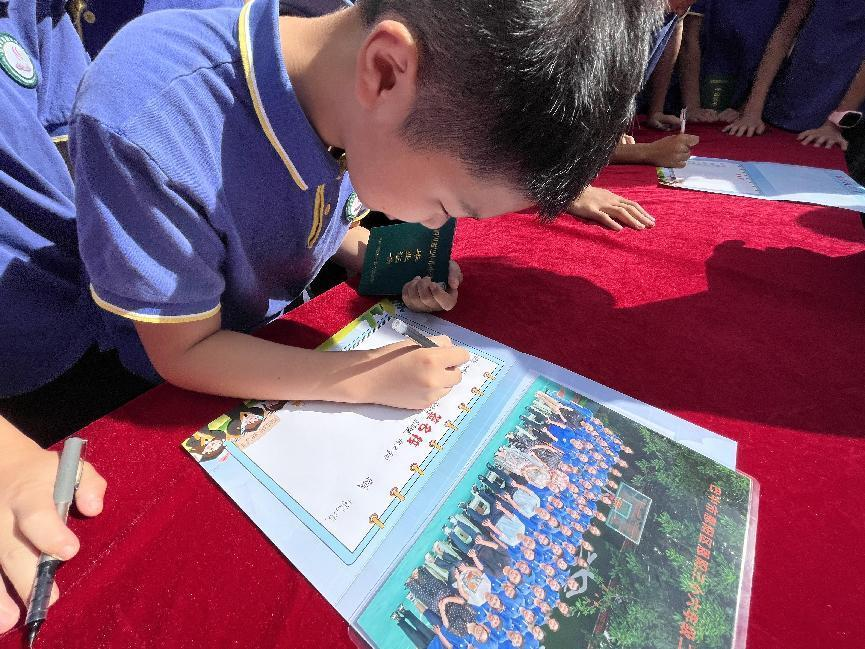最后,同学们拿起签字笔,将对母校的不舍以及对老师们的感谢化作一笔一划,将自己的名字写进毕业生纪念手册里,手册将被恩阳三小永远珍藏。