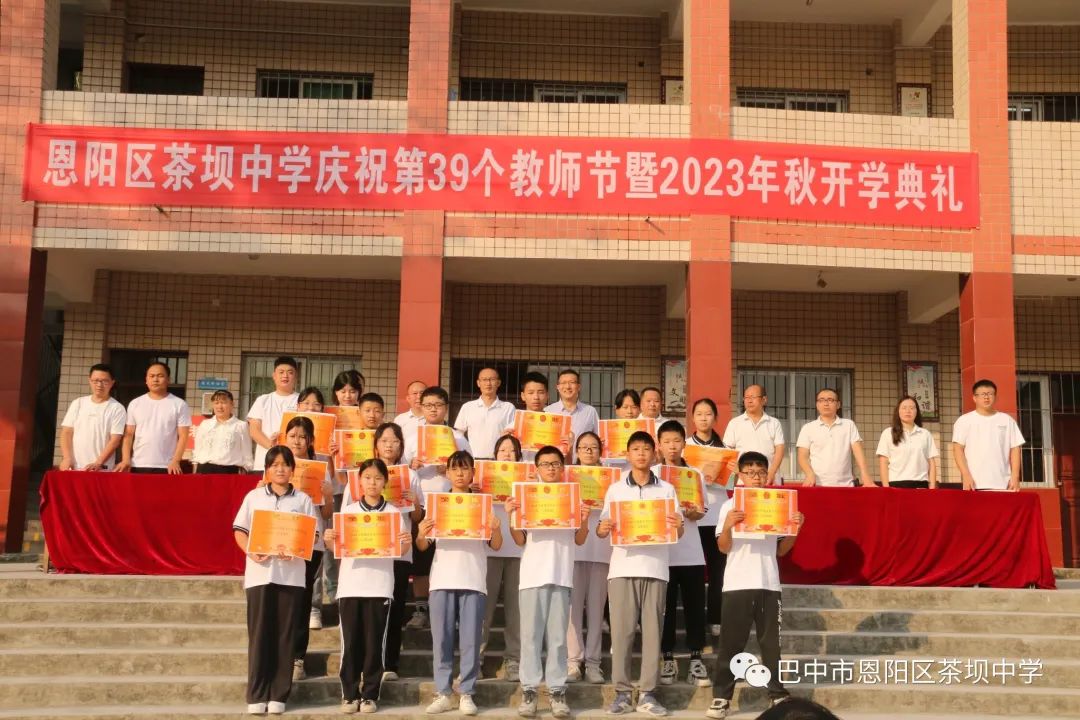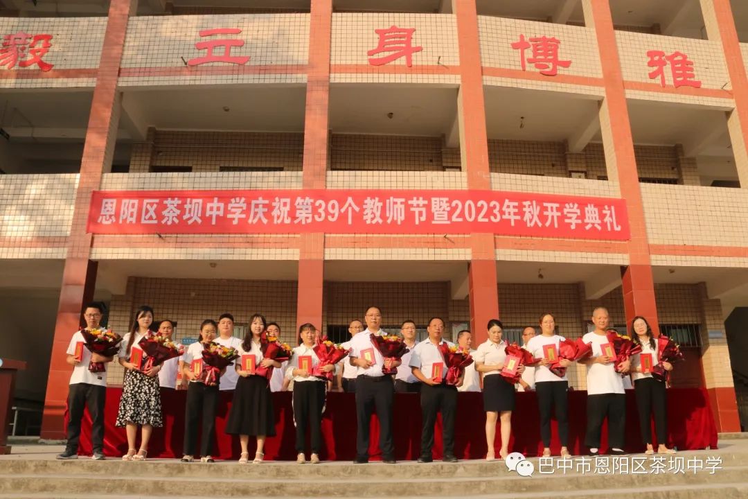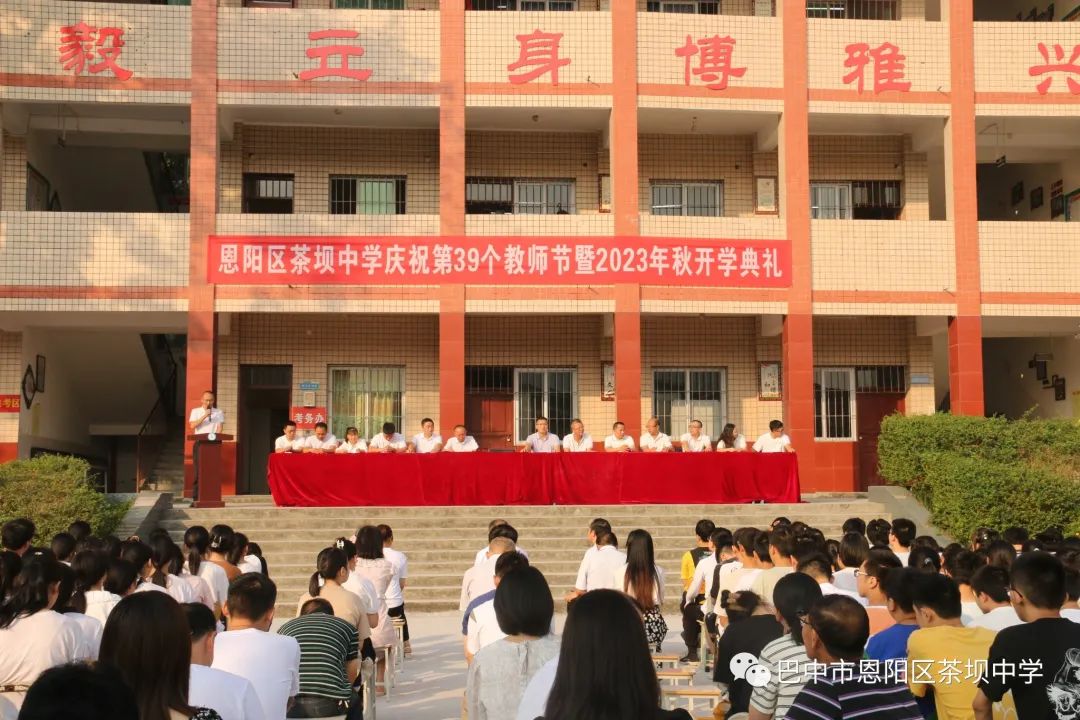 秋风送来凉爽,硕果飘来阵香,告别了骄阳似火的夏日,清凉宜人的秋天向我们展开了笑颜。告别了安静沉寂的假期,绿草如茵的校园又充满欢声笑语。9月8日上午,恩阳区茶坝中学举行了庆祝第39个教师节暨2023年秋开学典礼。