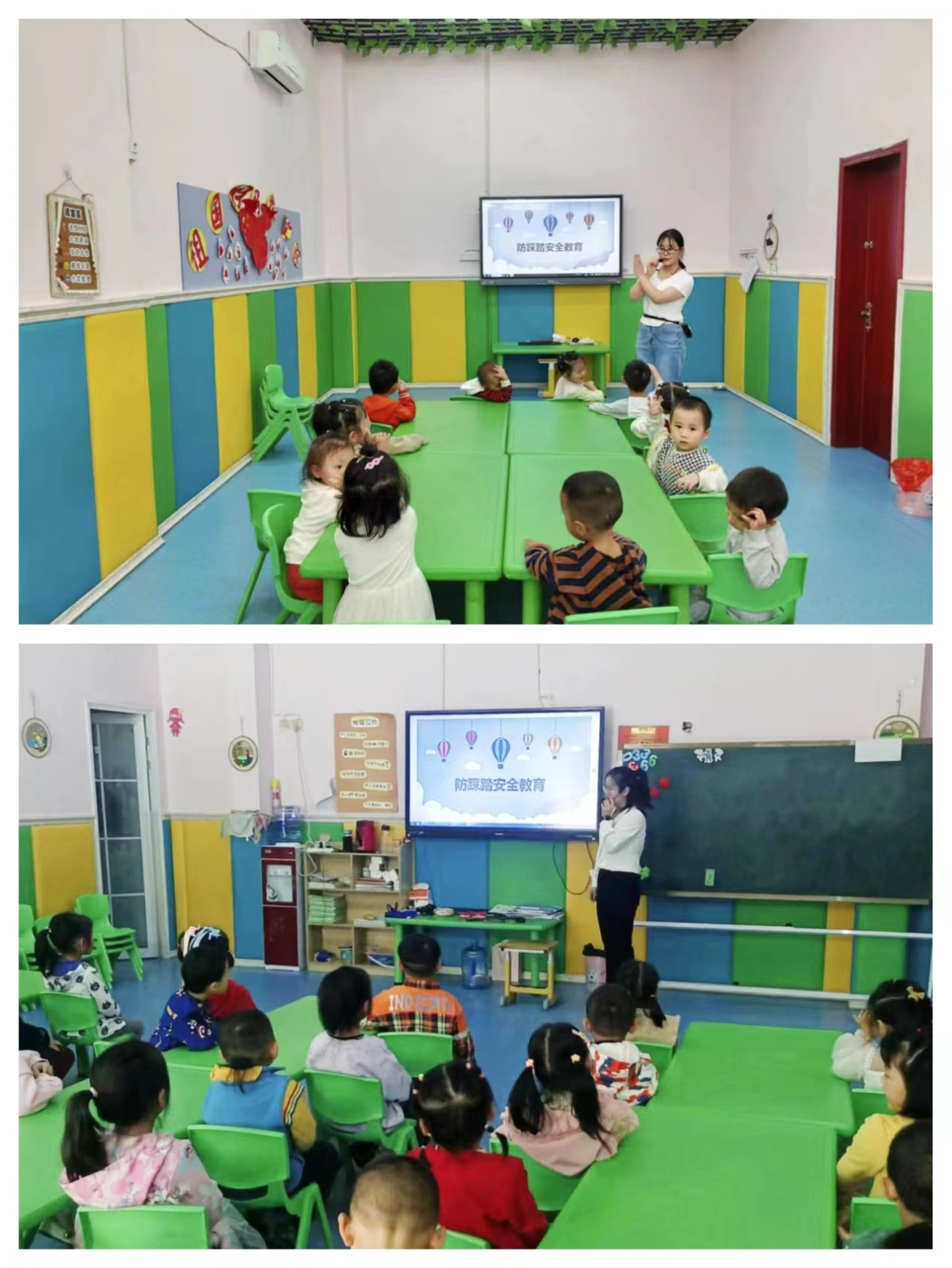各班教师根据本班幼儿的年龄特点,通过图片、视频和情景模拟等多种形式,对幼儿开展预防拥挤踩踏事故的安全教育,让幼儿了解容易发生踩踏事故的地点,学会如何预防踩踏事件的发生。
