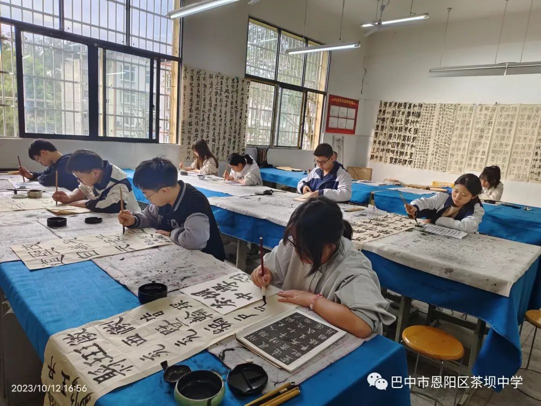 从古人在第一片甲骨上刻画文字符号,到石刻碑帖,无一不诠释着文字能带给我们语义言辞;中国汉字历经了四千多年的沧海巨变,孕育出了篆、隶、行、草、楷各种彰显中国之美的书写文明,或强劲或委婉,或缓或急,行笔间透露着浓浓的个人情感。作为新时代下的文明传承者,茶坝中学将以教学相长为主旋律、以终身学习为己任,写好、教好规范汉字,不断开启与书法艺术的每次对话!