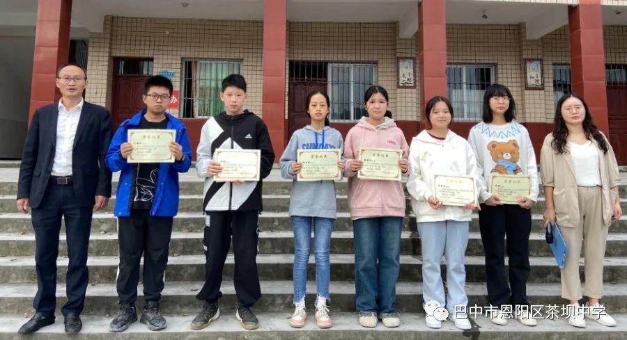 2023年10月9日,恩阳区茶坝中学校长易坤同志为巴中市恩阳区第二届中小学生汉字书写大赛获奖学生颁奖。
