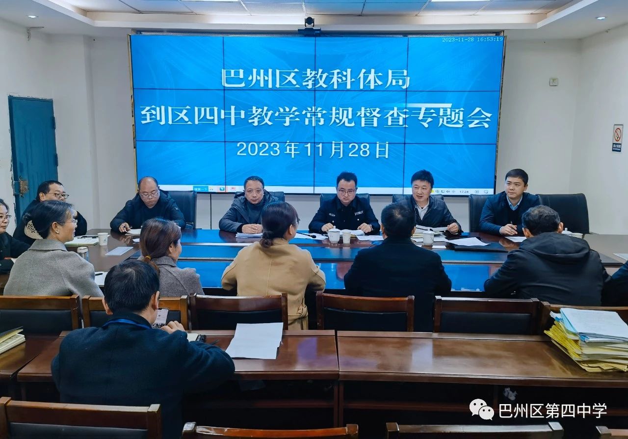 11月28日,巴州区教科体局督导检查组一行到区四中督查2023年秋学期教育教学管理工作。区四中党总支书记吴祖强、校长吕安平携各处室分管领导和负责人参加。