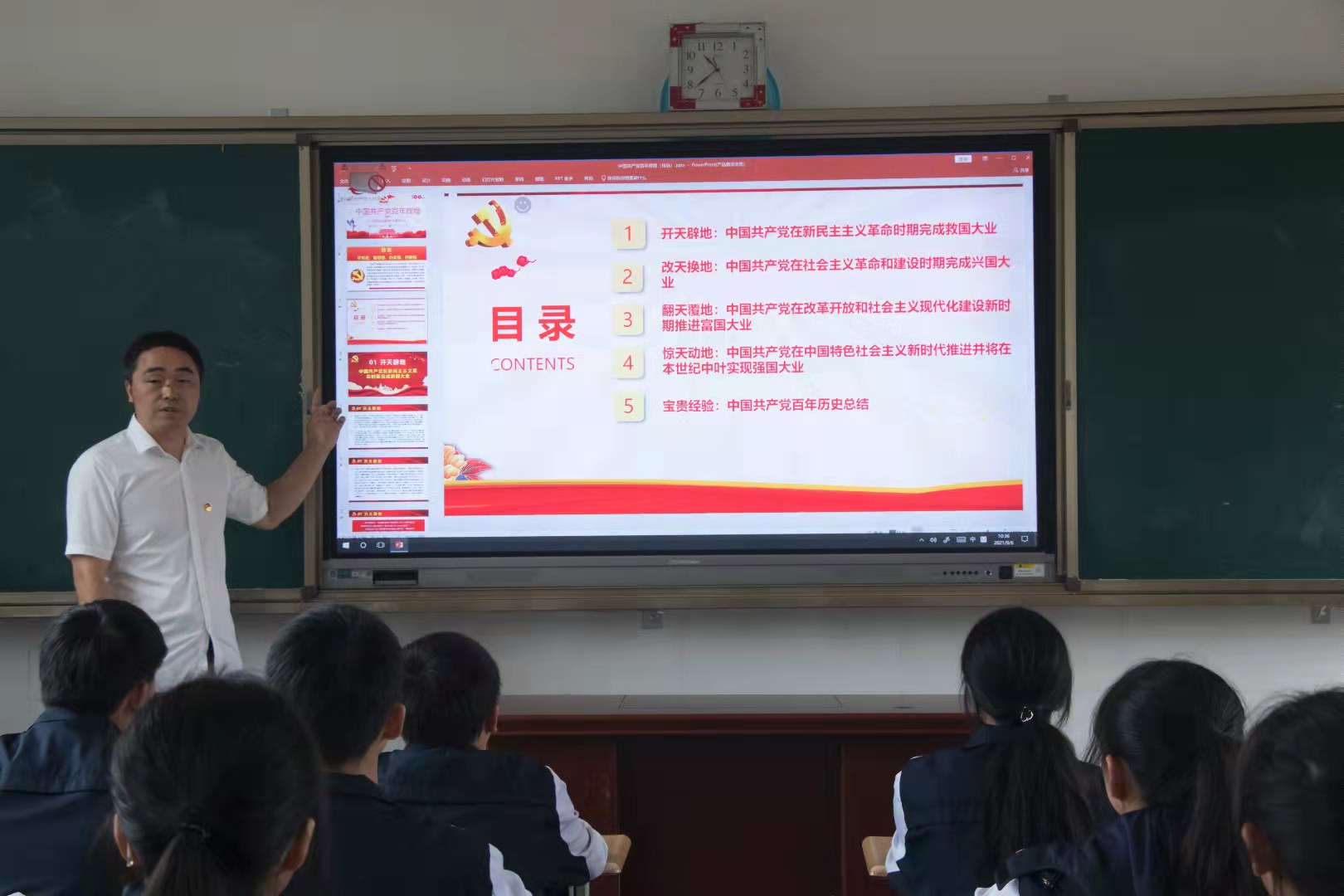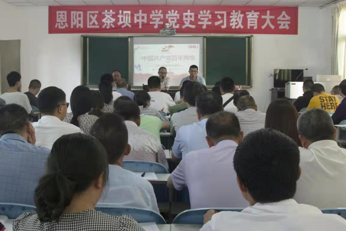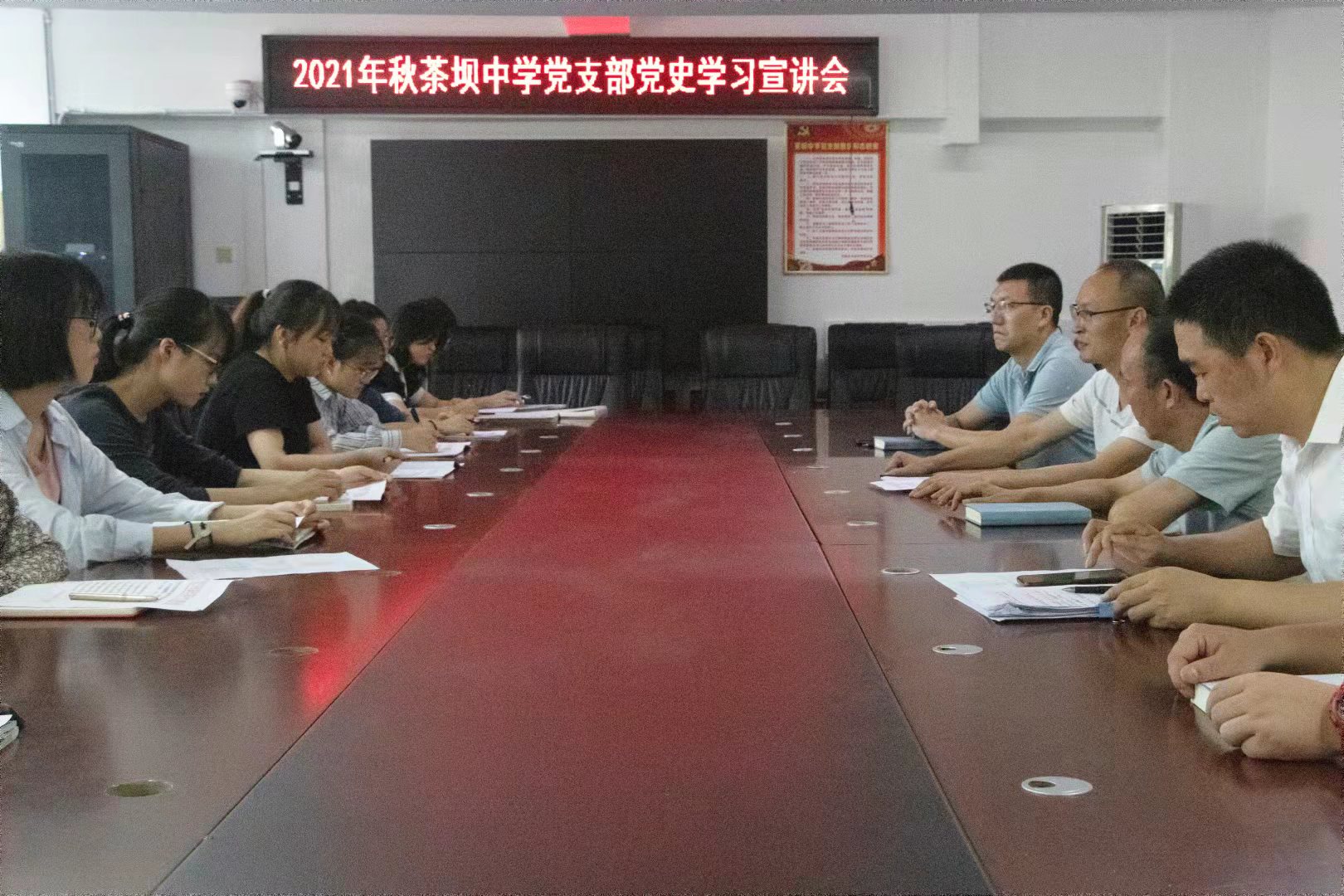 今年是中国共产党成立100周年,为了从党的百年历史中汲取继续前进的智慧和力量,深入学习贯彻习近平新时代中国特色社会主义思想,激励全党全国各族人民,满怀信心地迈进全面建设社会主义现代化国家新征程,9月6日下午,茶坝中学再次开展党史学习教育,党支部对新任中层领导和干事进行了党史宣讲会,随后在会议室开展党史教育学习大会。会议由校长易坤主持,全体教职工100余人参与了此次学习。