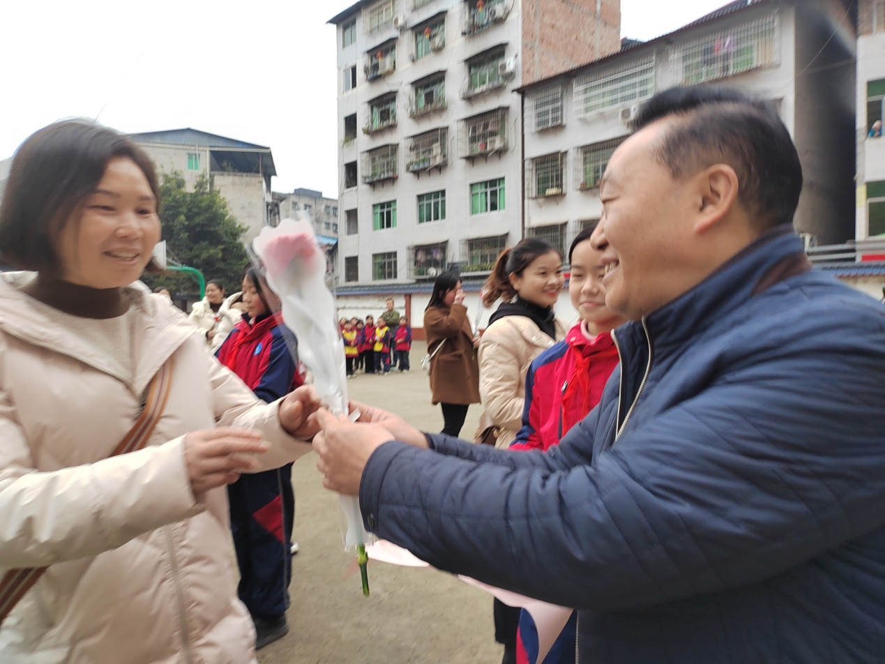 接下来,学校领导给每位女教师献上了代表着美好祝福的鲜花。