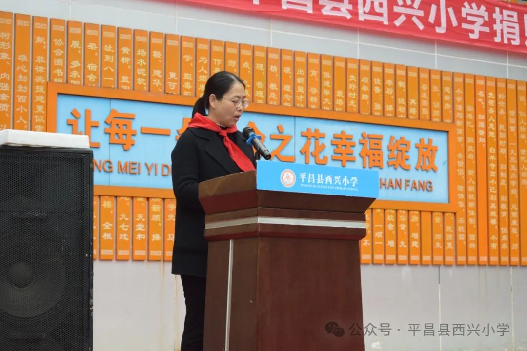 随后,西兴小学支部书记、校长冯渊同志发表了热情洋溢的致辞。他代表全校师生对金域华府房地产项目的捐赠表示衷心的感谢,并希望全校师生能够珍惜这份爱心,用优异的成绩回报社会的关爱。