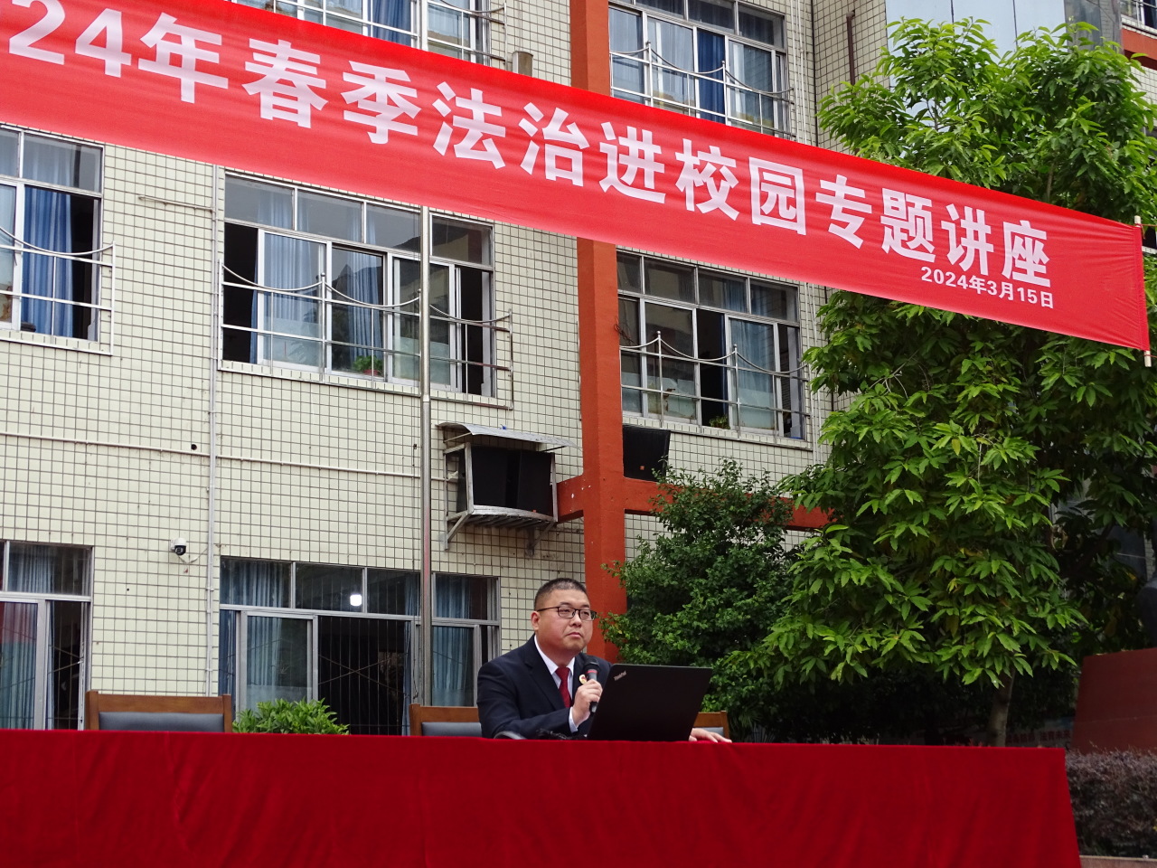 活动中,周易委员结合发生在学生身边的真实案例,以《心怀戒尺方自律,护好青春与芳华》为主题,为学生们带来了一堂生动的法治讲座。同时,他介绍了《未成年保护法》的法律部分条款,深入浅出地讲解的校园暴力、性侵、毒品等问题的危害性和法律后果,引导学生们树立正确的法制观念,增强自我保护意识。讲座最后还就如何预防校园欺凌、如何保护自己的合法权益等方面进行了详细的讲解,让学生们了解到在遭遇不法侵害时应该如何应对,从而鼓励学生们积极学习法律知识,提高自身的法律素质,成为遵纪守法的合格公民。