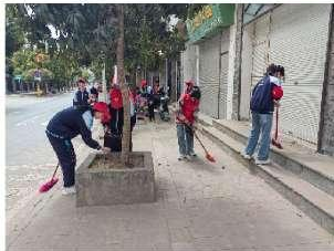 在这阳光明媚的日子里,学生们身穿统一的志愿者服装,手持清洁工具,来到校园周边及街道,认真清理街道两旁的垃圾和杂物。