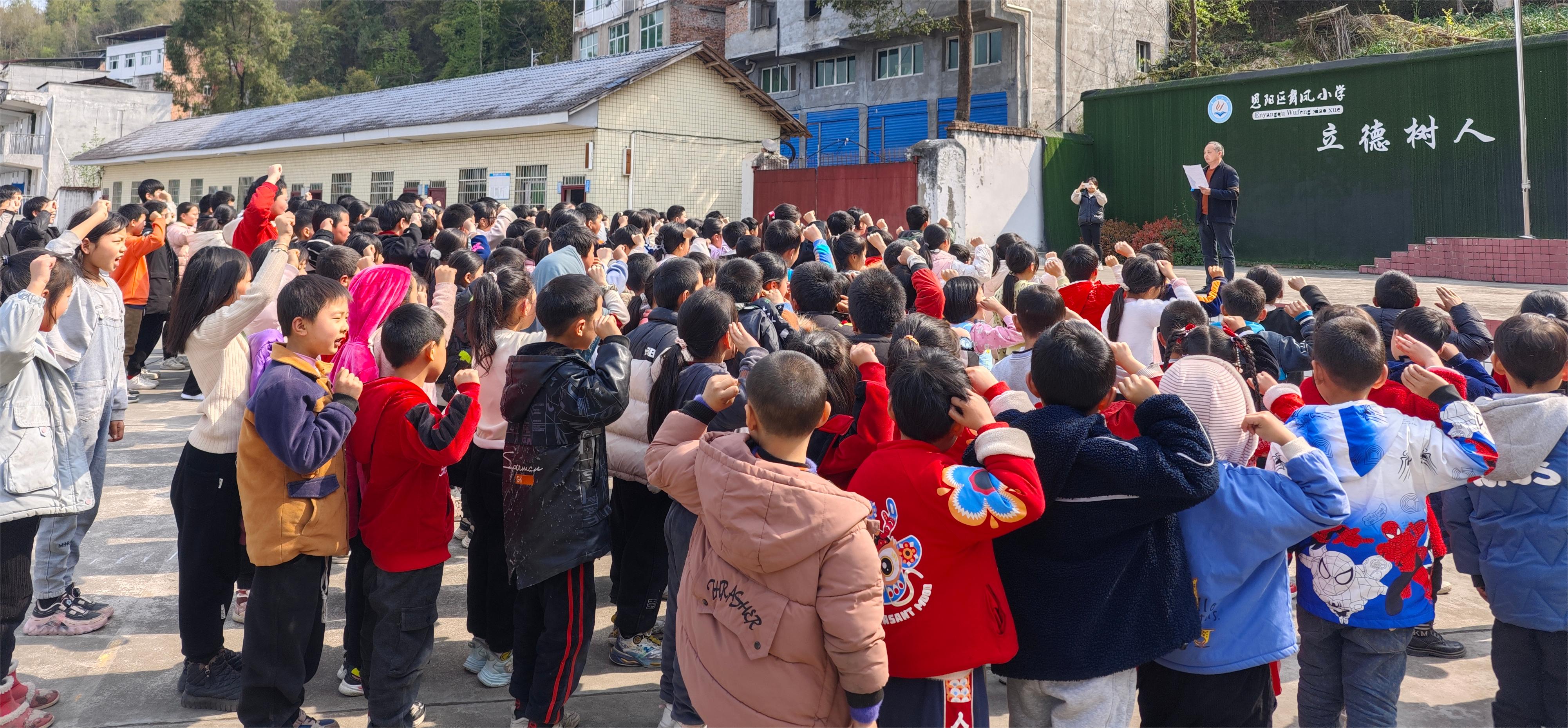 随后,“我们不当残忍的欺凌者,不当冷酷的旁观者,也不当沉默的受害者。我承诺:尊重他人,友善待人,绝不参与欺凌......”师生们郑重的宣誓响彻舞凤小学。