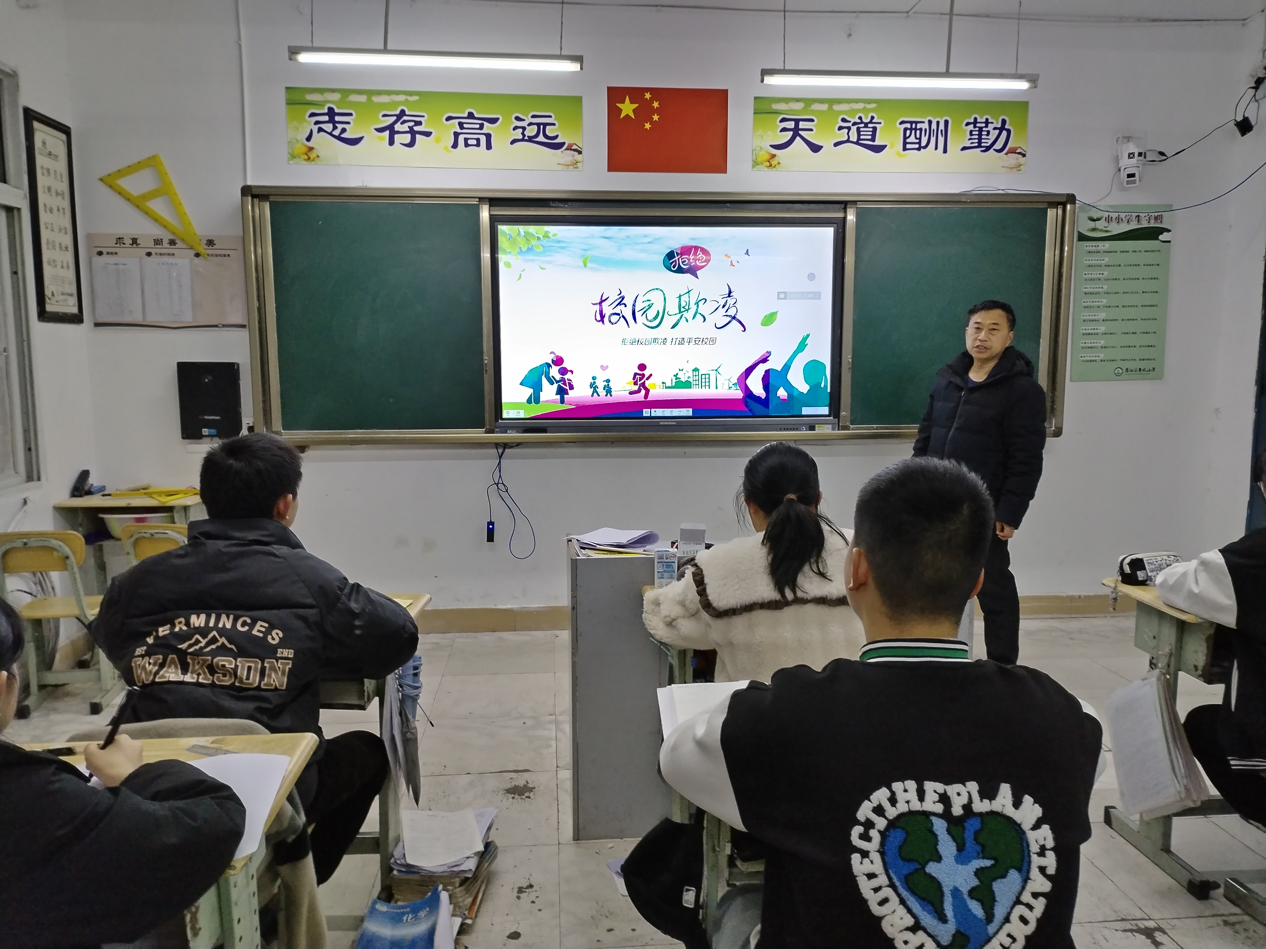 各教学班组织开展了防校园欺凌主题班会,班主任结合事件案例,对学生进行防欺凌安全教育。