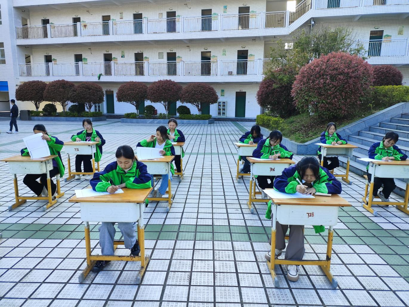 本次比赛统一时间、统一地点、统一纸型,尽情展示学生的书写风采。经过初赛选拔,每班前五名学生进入决赛,分为小学低段组、小学中高段组、初中组三个组别进行比赛。词语播报老师用标准的发音、深度的提示,为同学们念出标准的话语。全体学生观摩决赛现场,现场弥漫紧张而又浓郁的气氛,未能进入决赛的同学,也积极拿出纸笔练习听写。同学们认真地品味着汉字的书写魅力,所写字体或大气、或清秀、或刚健,尽其所能地展现自身的词语听写才能,充分展示了南小学子扎实的词语基本功。