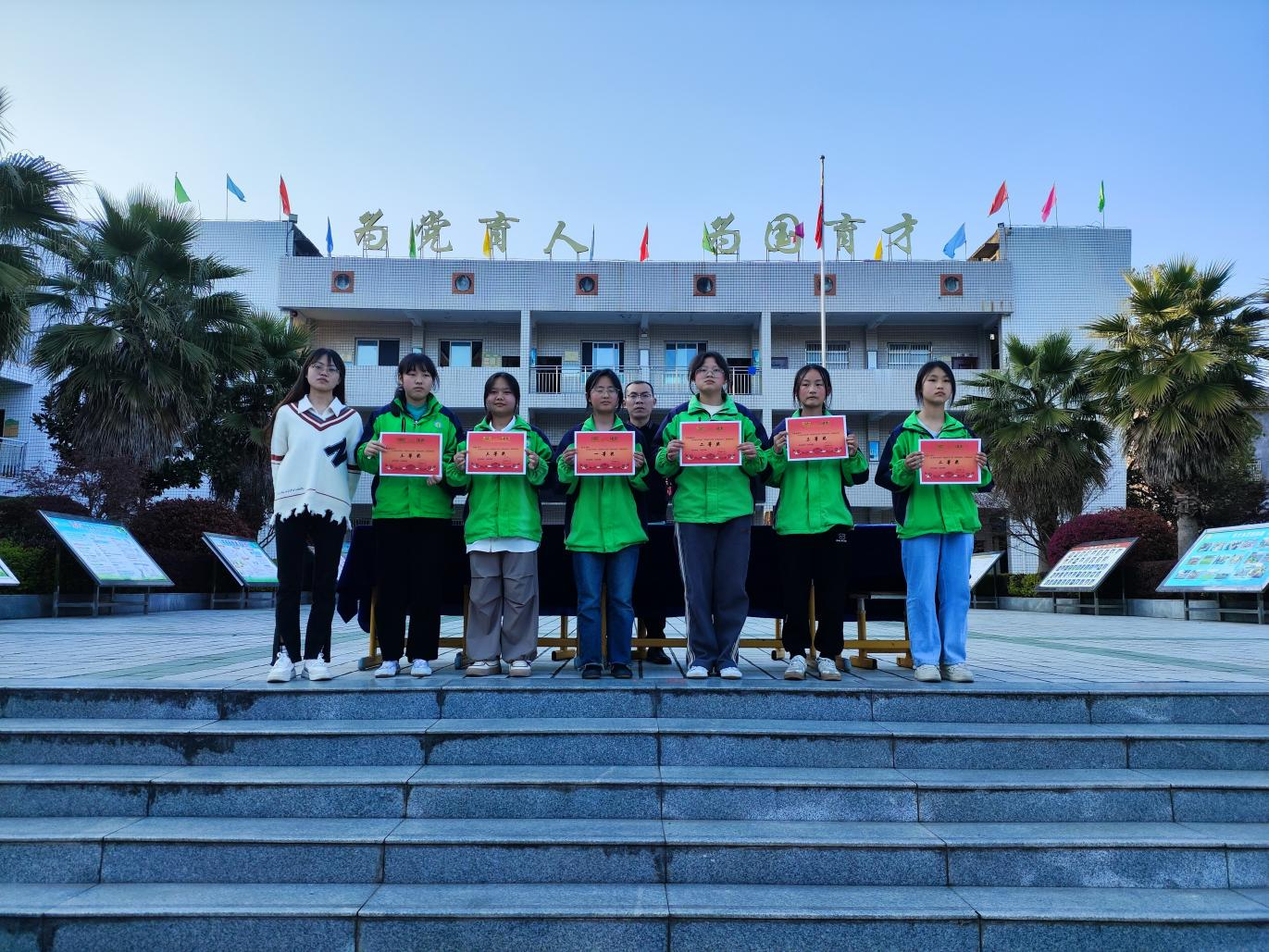 赛后,学校教导处组织语文教研组对学生作品认真批阅,层层筛选,严格把关书写质量,共评选出17份获奖作品,并现场为获奖学生颁奖。