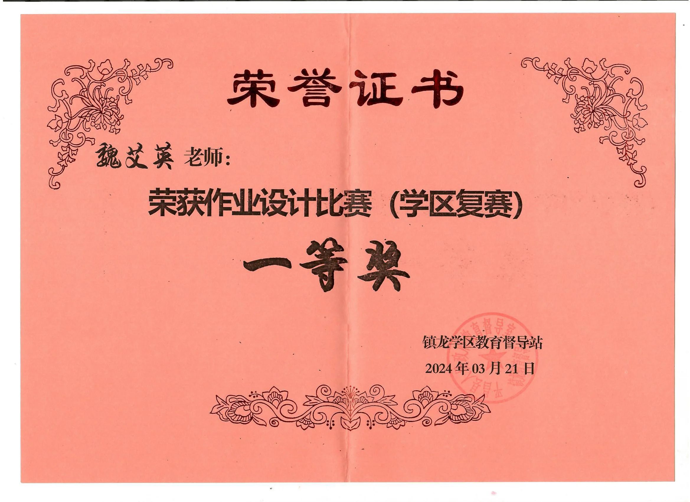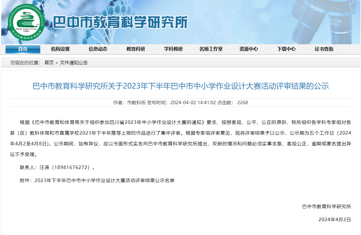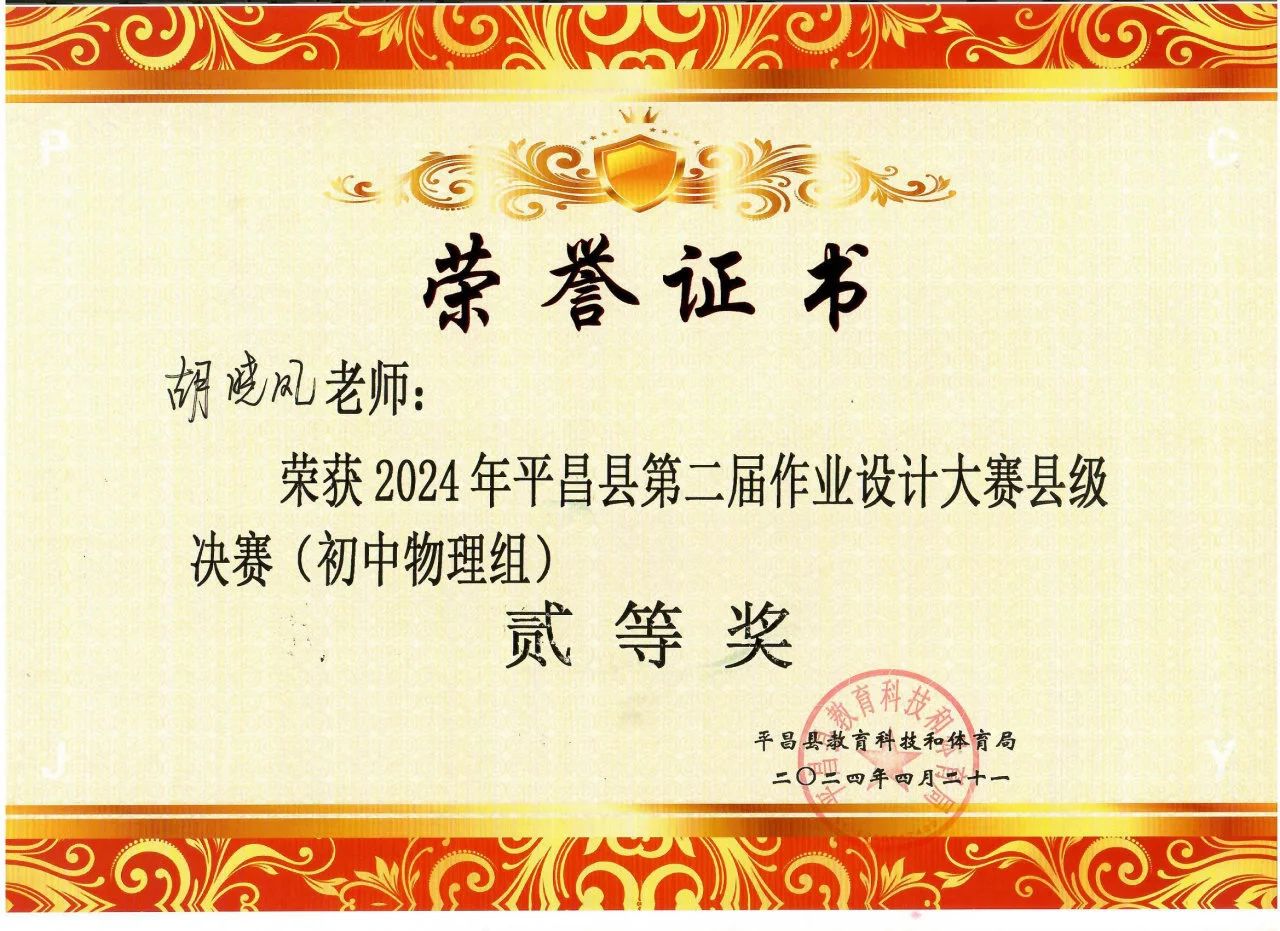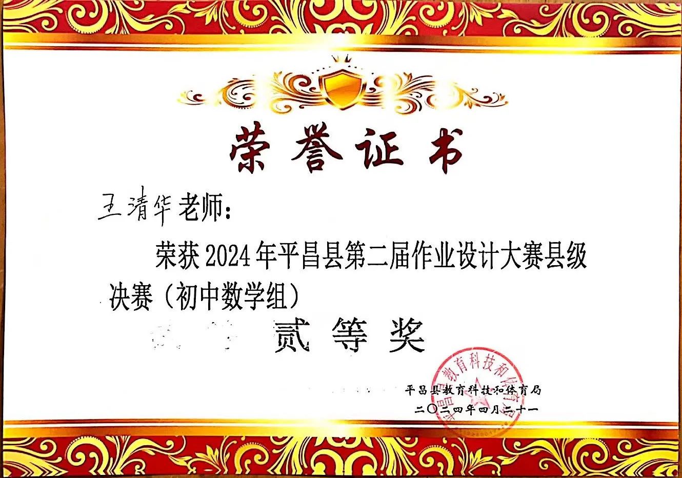 2024年平昌县第二届作业设计大赛中我校共有6名教师进入决赛,斩获特等奖1个、一等奖1个和二等奖4个,涵盖科学、劳动、数学、化学、物理、数学六个学科。学校荣获“优秀组织奖”,圆满完成了”以赛促学、以学促做“的任务目标。