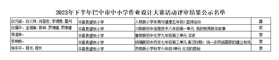 平昌县望京小学在作业设计大赛中喜获佳绩