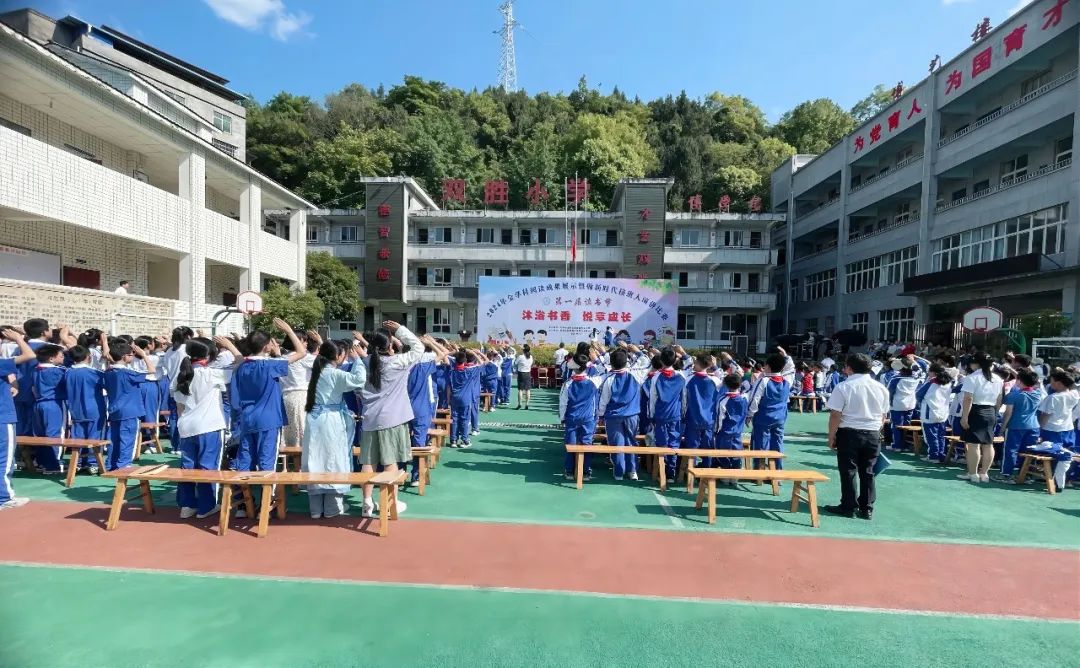 随着冉冉升起的五星红旗,双胜小学“沐浴书香.阅享成长”2024年全学科阅读成果展示暨第一届校园读书节活动正式拉开帷幕。