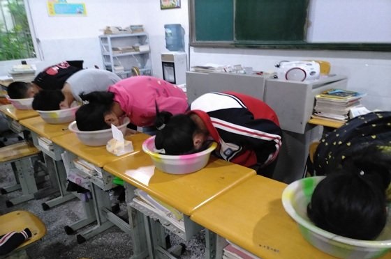 在“一盆水闭气”体验活动中,学生们都抱着试试的心态体验闭气活动,有的同学刚把头伸进去就受不了伸出头来,有得同学闭气时间要长一点,但都坚持不了一分钟,学生在体验之后分享了自己的感想,班主任进行总结,教导孩子们要远离水塘,珍爱生命。