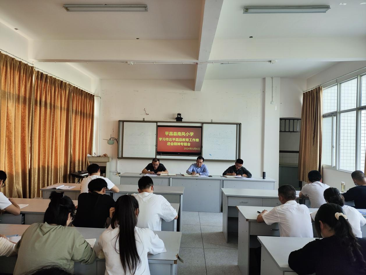为深入学习贯彻巴中市教育工作大会、平昌县教育工作推进会、平昌县教育科技局学习贯彻全县教育工作推进会议,教育引导全体教职工凝聚思想共识,担当时代重任,以更加有为的精神状态和求真务实的作风投身到教育事业中,5月6日,南风小学分别召开行政会和全体教师会,传达学习三场会议的重要内容。