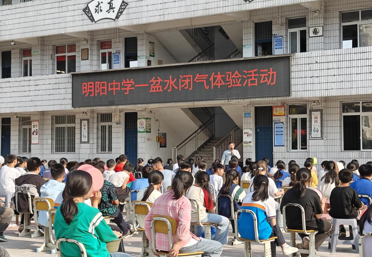 为进一步增强青少年防溺水安全意识,有效预防溺水事件的发生,5月6日,恩阳区明阳初级中学组织全体学生开展一盆水闭气式体验活动。