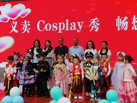 本次活动分四个环节:领导及幼儿家长代表发言、幼儿畅玩Coss秀、中班组厨艺展示、义卖活动。义卖区分三个展区:玩具、图书、还有美食品尝区。