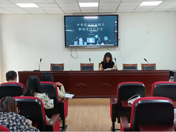 林琳老师针对中考备考中的“补全短文”题型,从命题形式、解题技巧、复习策略等方面进行了全面而细致的讲解。在听完林琳老师的分享后,与会教师们积极讨论,纷纷表示受益匪浅。英语教研组长谢平波特别强调了日常教学中学生基础知识的巩固和答题技巧训练的重要性。教科室副主任祝新春老师也对学生积累词汇量和熟练运用词汇的重要性进行了分析。