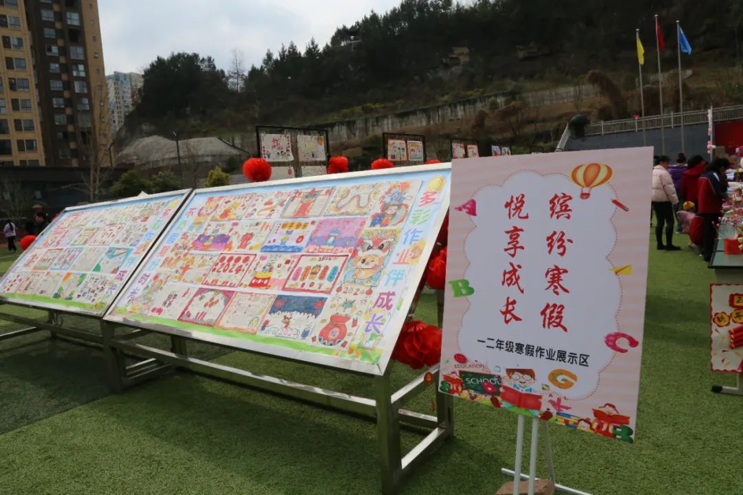 作业展区中,二年级的年画和手工制作品,精妙绝伦,连老师和家长都赞不绝口。六年级通过龙重登场,“数”你有才;龙行寒假,“英”你精彩;龙腾虎跃,“语”你同行,三个板块展示寒假特色作业,引得参观的领导赞叹不已。知年俗、品年味、享年趣,四年级收集春联、办年货、制作年夜饭等手操报展示,让我们感受到团圆中国年幸福的味道。