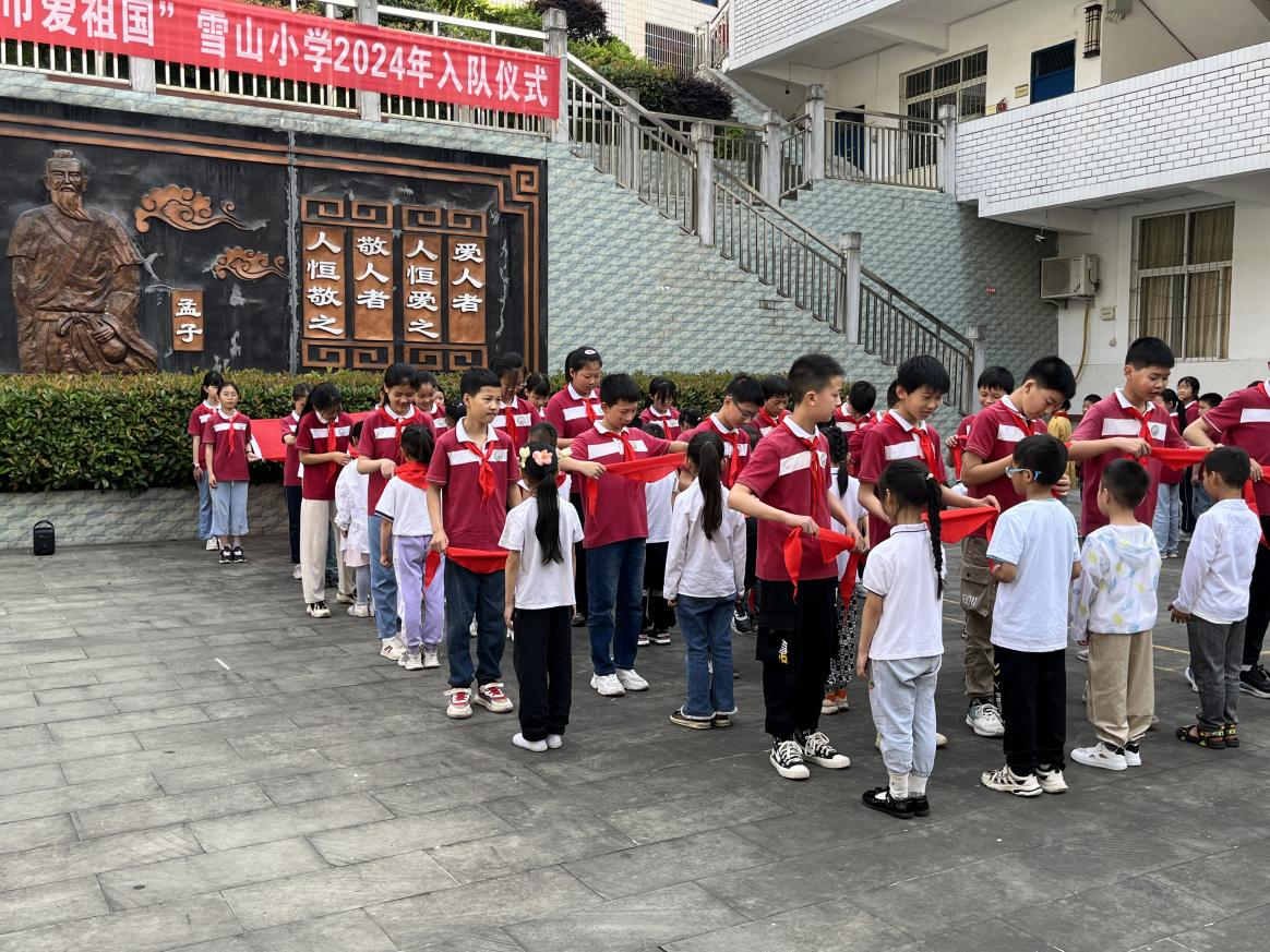 “我们是共产主义接班人,继承革命先辈的光荣传统……”6月4日上午,嘹亮的队歌在校园的上空响起,这是雪山小学在举行2024年“红领巾 爱祖国”少先队入队仪式。又一批一年级小朋友戴上了企盼已久的红领巾,成为了一名光荣的少先队员。