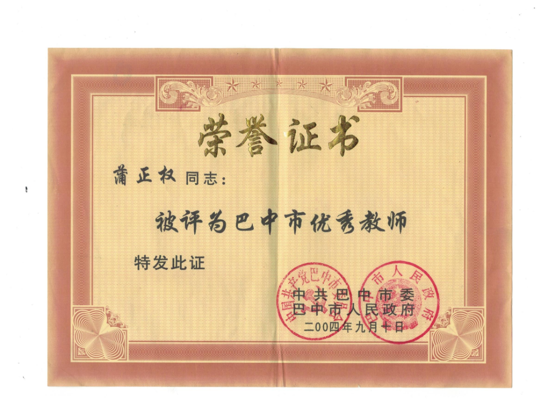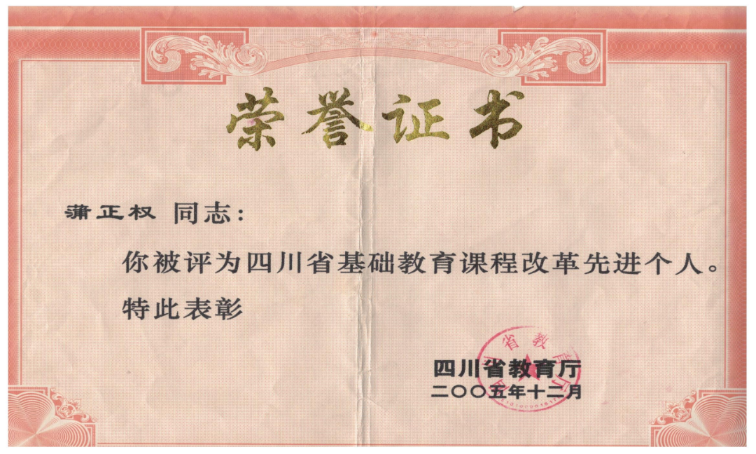 加强学习,注重教研,教学相长是蒲正权从教三十多年的教学感悟。在三十多年的教育教学工作中,他不断加强学习,积极参加各种教研活动,取长补短,提高自己的教育教学能力,学习好的教学方法、钻研教材、处理教材和驾驭课堂的技巧。如何从题海中解脱出来,真正做到精选、精讲、精练,减轻学生的作业负担,让学生有更多的时间去发展自己的想象空间。积极参加学校组织的教研活动,注重两个大的方面,一是课堂教学好在哪些地方,有哪些不足;二是通过大家的讨论,从中学到这节课为什么好,为什么不足,并集中研究讨论了新教材中的重点、难点内容的处理方法,各抒己见,达到了共同提高的目的。特别是基础教育课程改革以来,学校全面使用了新教材、新课标,对新课标的理解,新教材在教学过程中出现的新问题,不拘于时间的限制,随时都在组内研究讨论这些问题。第三,积极撰写教育教学经验论文。先后撰写的《几何证题入手》《注重生活实际,加强口语教学》《作文教学之他见》、《列表法解答工程问题》《利用现代远程教育技术优化数学课堂教学》《农村小学作文教学初探》《班主任工作三抓三放》《农村小学阅读与作文教学的困惑与对策》《浅析新课程下小学数学“学困生”的解救措施》《小学班主任管理工作浅谈》《浅谈如何在小学数学教学渗透数学思想方法》等十余篇论文分别获国家、省、市、县级奖励。《小学数学游戏教学之我见》和《浅谈如何在小学数学教学渗透数学思想方法》分别发表在《读写算》2015年第3、14期,《浅析新课程下小学数学“学困生”的解救措施》发表在《教学与研究》2015年12期。《分数四则运算》参加巴中市第七届“晏阳初杯”优质课赛被评为二等奖。在三十多年的乡村教育工作中,他先后获得“四川省基础教育课程改革先进个人”、巴中市“优秀教师”等光荣称号,多次获得县教育主管局、乡镇党委政府、学校等表彰奖励。