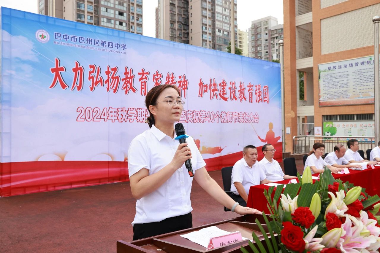 巴州区四中召开2024年秋季学期开学典礼暨庆祝第40个教师节表扬大会