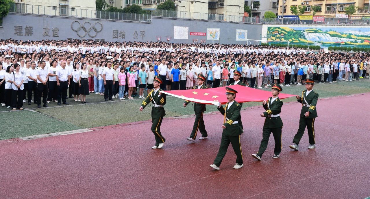 9月10日上午8时,巴中市巴州区第四中学在学校运动场隆重举行2024年秋季学期开学典礼暨庆祝第40个教师节表扬大会。国歌奏响,全场肃穆,国旗护卫队踏着坚毅的步伐缓缓走来。在全校师生的注目礼下,鲜艳的五星红旗伴着骄阳冉冉升起。