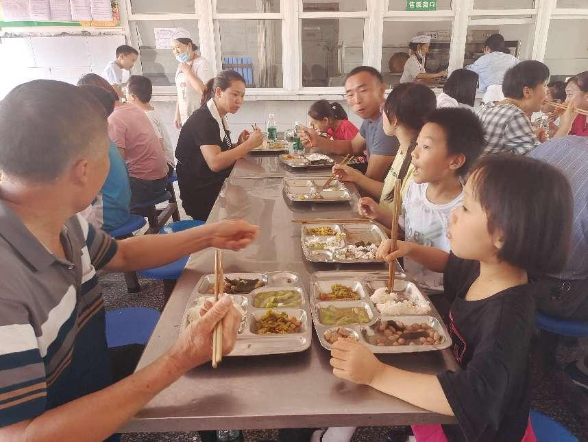 正好到了午餐时间。学校班子成员陪同家长和师生代表拿起餐盘,排起队伍、沉浸式体验学生就餐。大家一边吃一边交流、对饭菜的软硬、色香味以及营养搭配都做出十分肯定和赞赏性的评价。他们纷纷表示,孩子在这样的食堂就餐,他们十分放心。