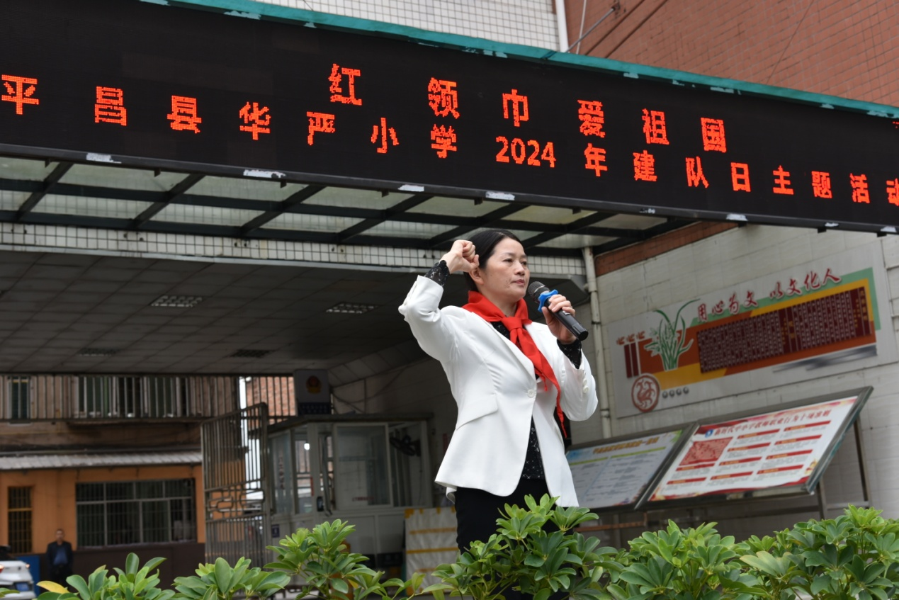 为深入贯彻习近平总书记关于少年儿童和少先队工作的重要论述,增强少先队员对少先队组织的荣誉感和归属感,10月14日上午,平昌县华严小学举行了2024年少先队建队日暨新队员入队仪式。在少先队大队辅导员张晓芳的主持下,学校校级班子、各班班主任及全校学生参加了此次活动。