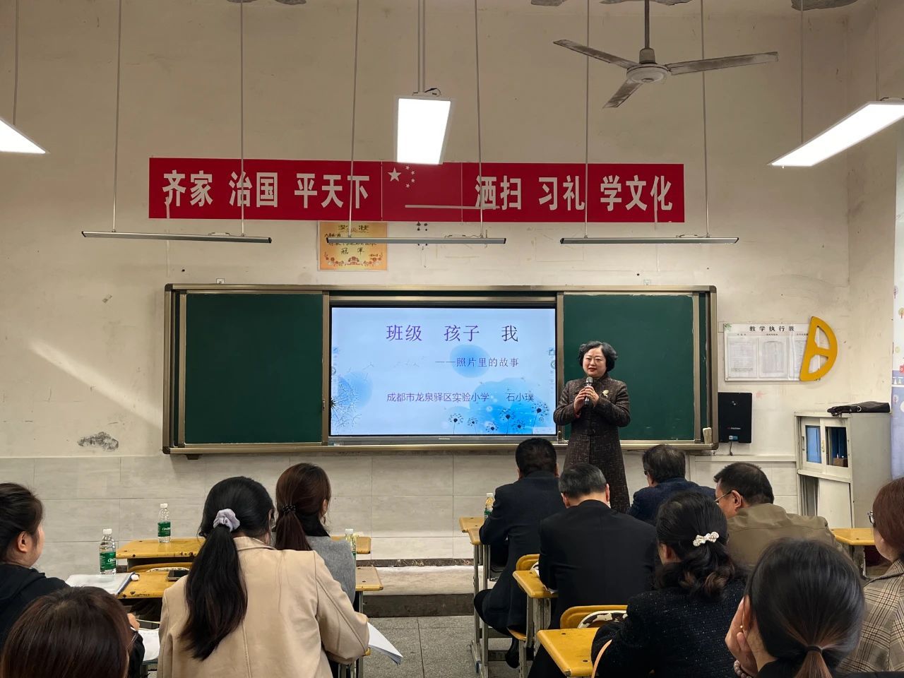 观课议课活动结束后,龙泉驿区实验小学教科室主任、全国优秀语文教师魏蓉开以《“双减”导向的小学语文单元作业设计实践研究》为题作了专题讲座。她针对目前小学语文单元作业设计和实施中存在的问题,阐述了小学语文单元作业设计的内涵、方法、成果等,为学校语文教学提供了优秀的范例。龙泉驿区实验小学省级教学名师、成都市优秀班主任石小璞老师以《meng(萌、猛、梦)班成长记》为主题,分享了她的meng班故事,引得现场阵阵掌声。