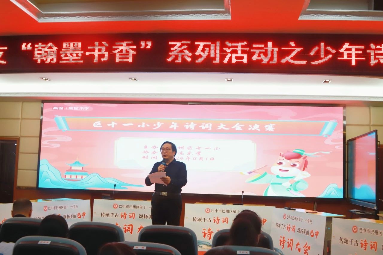 为弘扬诗词文化,领略诗词魅力,体味丰富的人文内涵,全面提高学生的文学素养,11月1日,“传颂千古诗词 颂扬美丽巴中”巴州区第十一小学校诗词大会在会议室隆重举行。学校党总支书记朱秀明、校长蹇志勇、党总支副书记王竹、副校长周鹏、各班班主任及全体语文教师参加活动。