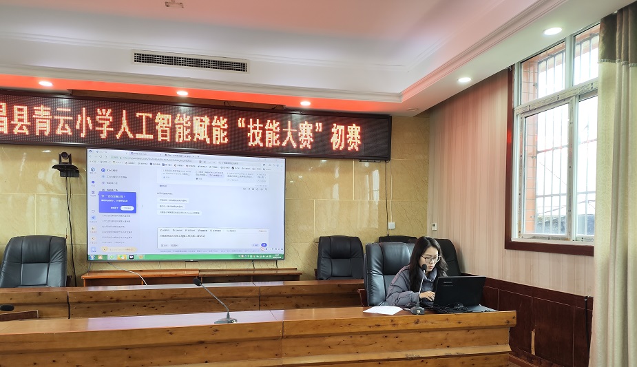 11月26日,平昌县青云小学举办了人工智能赋能教育“技能大比武”活动初赛。此次活动紧密围绕《平昌县教育科技局关于开展人工智能赋能教育系列活动的通知》要求,积极推动人工智能与教育教学深度融合,在全校教师中掀起了一股探索创新教学方法的热潮。