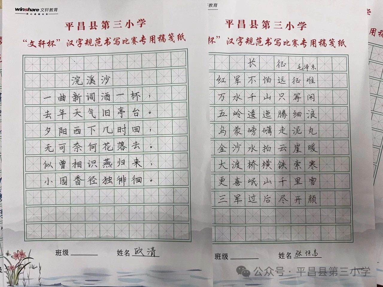 笔墨润心 文韵悠扬——平昌县第三小学“文轩杯”规范汉字书写比赛