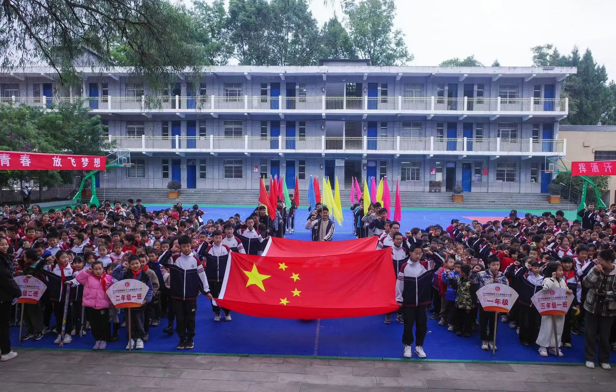 近日,乐丰小学举行2024年冬季田径运动会。伴随着激昂的《运动员进行曲》,在护旗手队的带领下,各班级方队迈着整齐的步伐入场,各方队响亮的口号,运动代表激情的发言标志着他们将以饱满的热情和青春的活力在赛场上奋勇争先,超越自我。
