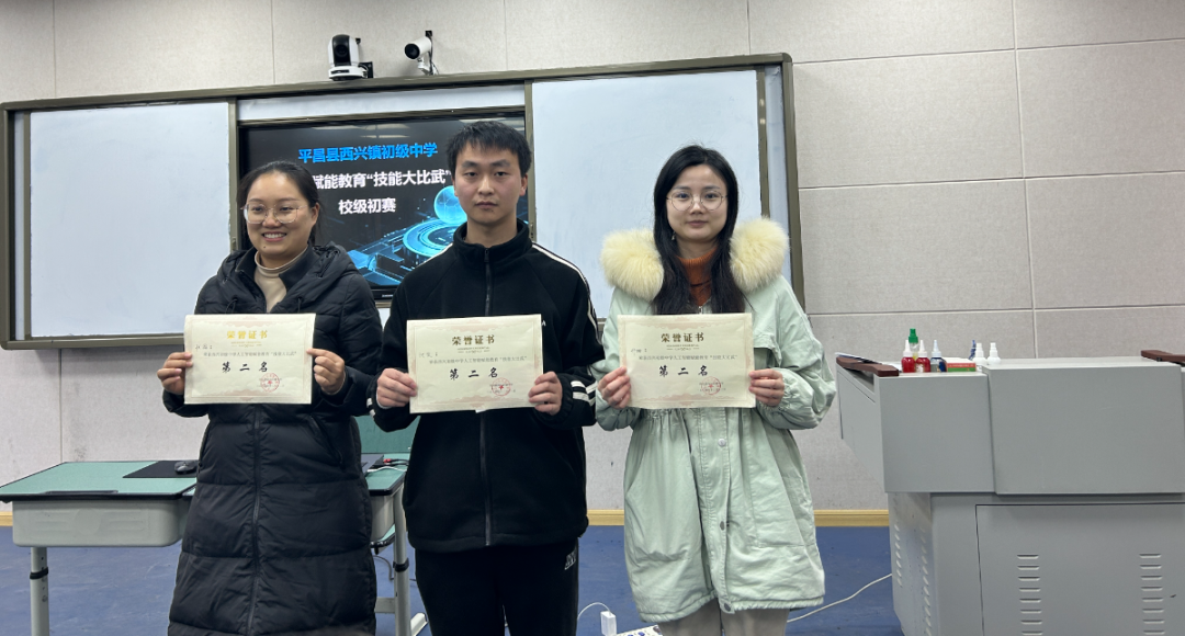 评委依据县级决赛评分要点及标准公正评判,秦于斯凭借出色发挥拔得头筹,斩获特等奖,将代表学校参加片区复赛;赵迷、熊静表现优异,荣获一等奖;张鑫、池俊、邢姗发挥稳定,喜摘二等奖。学校依奖项设置,为获奖教师颁发了奖证及奖金,激励其在 AI 教学创新之途持续奋进。