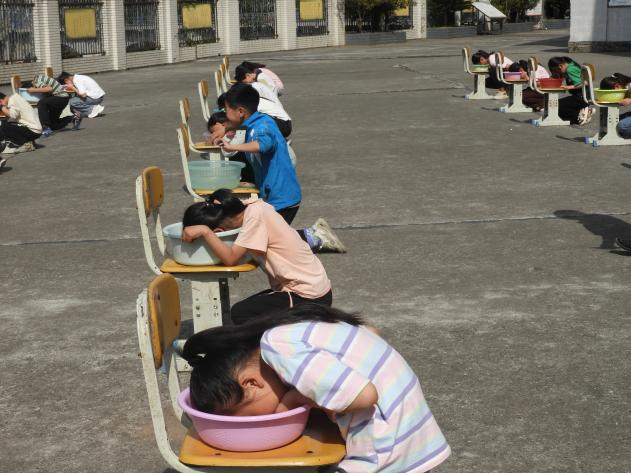 演练现场,各班班主任首先通过生动的 PPT 和典型案例,向学生们讲解了溺水的严重后果、预防溺水的措施以及溺水时的自救与互救方法。随后,“一盆水闭气” 体验环节正式开始。在老师的指导和保护下,学生们依次将脸浸入装满水的脸盆中,体验溺水时的窒息感。起初,有的学生因紧张呛到水,在老师安抚下逐渐放松;有的学生坚持几秒后就因难受而抬起头。体验结束后,学生们纷纷表示:“仅仅几秒钟就感觉非常难受,溺水实在太可怕了,以后一定远离危险水域。”