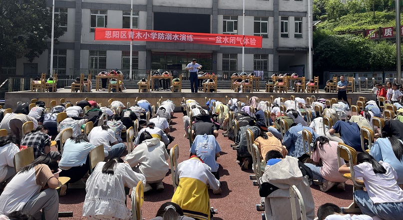 一盆清水浸初心 生命教育护成长---恩阳区青木小学开展沉浸式防溺水安全演练