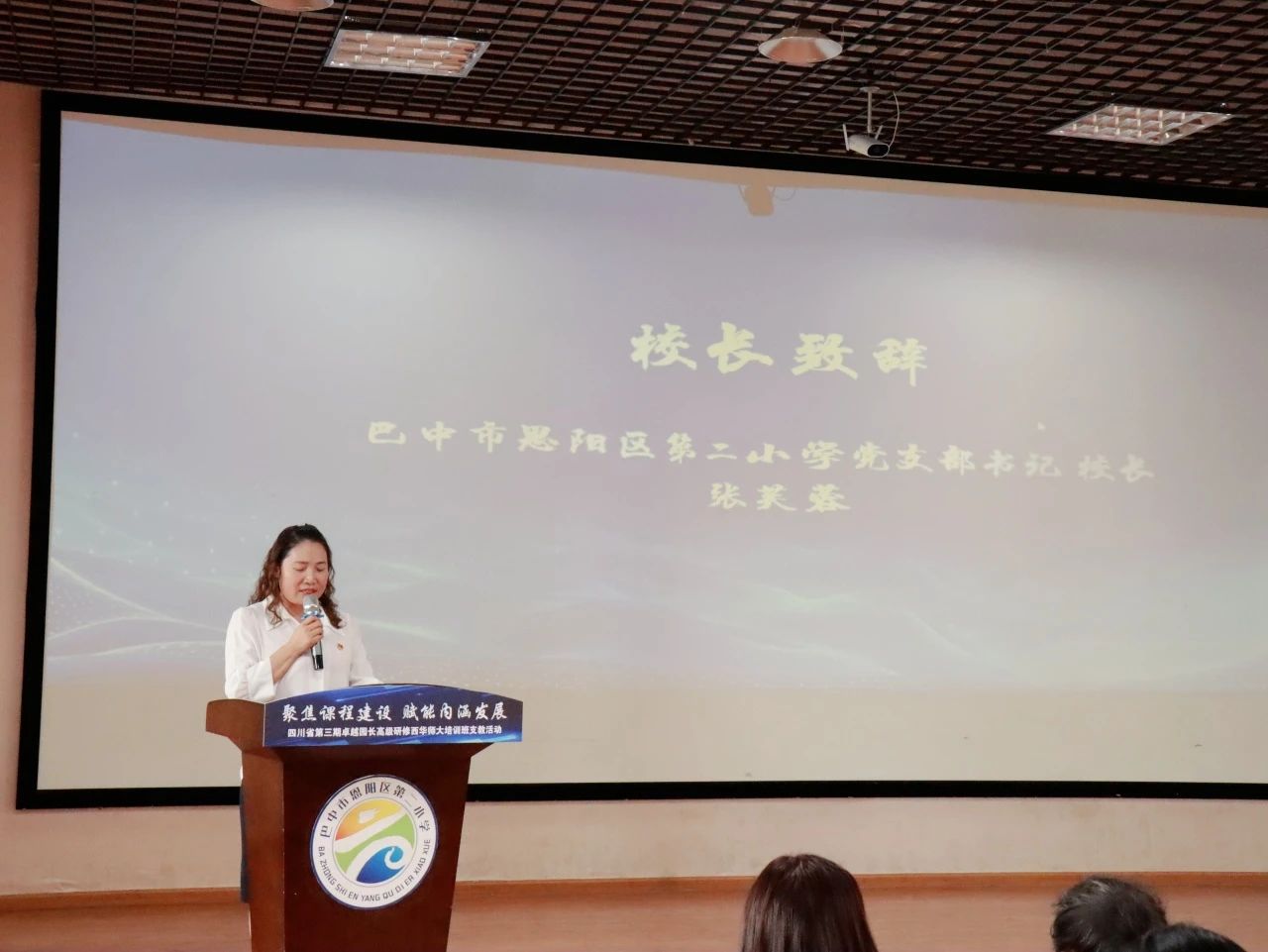 巴中市恩阳区第二小学党支部书记、校长 张芙蓉致辞,热列欢迎指导专家莅临指导!