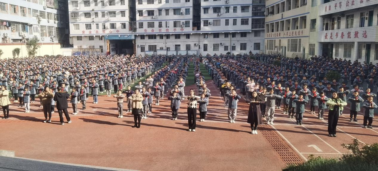 除传统跑操外,特色大课间融合多元元素:武术操融入拉伸、跳跃、深蹲等体能训练,强化肌肉力量与身体协调性;《三字经》韵律操将国学经典与运动节奏结合,让学生在肢体律动中感受传统文化魅力,实现体育锻炼与文化浸润的双向赋能。