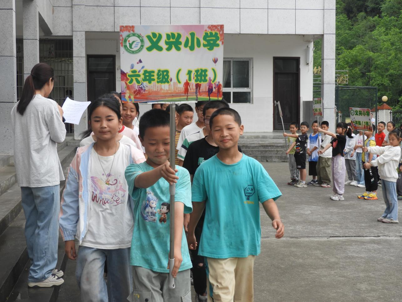 为保障运动会顺利开展,学校提前精心筹备,老师们各司其职,从赛事安排到场地布置,从安全保障到后勤服务,每一个环节都凝聚着大家的心血。运动会开幕式上,伴随着激昂的运动员进行曲,各班学生组成整齐的方阵依次入场。他们精神抖擞、步伐矫健,喊着响亮的口号,充分展现出农村孩子的朝气与活力。