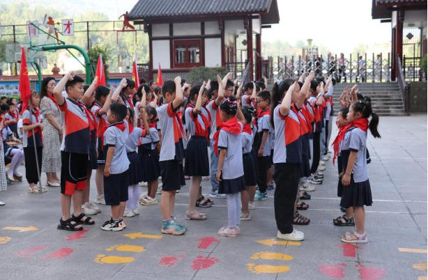 全体队员齐唱《我们是共产主义接班人》,嘹亮的歌声响彻校园;“准备着,为共产主义事业而奋斗!”“时刻准备着!”的呼号声铿锵有力,展现出新时代少年昂扬向上的精神风貌。