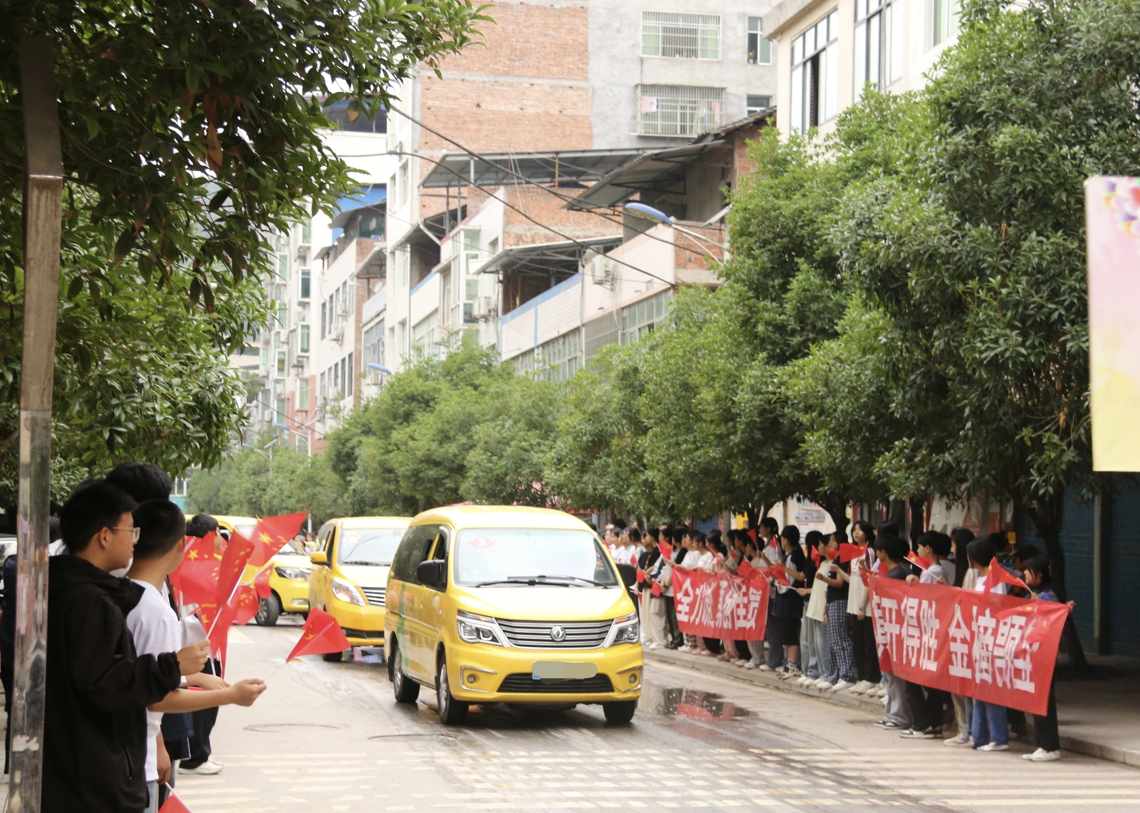红毯尽头,送考车静候,学子登车的背影,带着全校师生与家乡的祝福,奔赴高考战场。而校门口列队欢送的同学们,用呐喊与掌声,编织成最温暖的 “后援墙”,目送学长学姐奔赴远方。