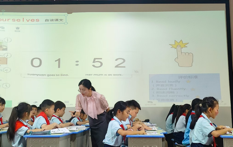 参赛教师们精心设计导入活动:有的采用结构化问题驱动教学,引导学生带着明确任务去阅读、聆听和理解;有的运用图片环游法,引领学生逐图解析文本,再进行深度阅读、听力训练和实际应用。五节课均充分体现了以学生为中心的理念,关注单元整体教学,灵活运用师生导学、师生共学、小组合作等多种学习方式,将课堂主动权交还给学生,生动诠释了新课改背景下小学英语课堂的新样态。尤为可贵的是,老师们巧妙地将教学内容从课本中Yuanyuan和妈妈的时间表,自然过渡到学生自己父母的工作日常,引导孩子们理解父母的辛劳,学会关爱父母。