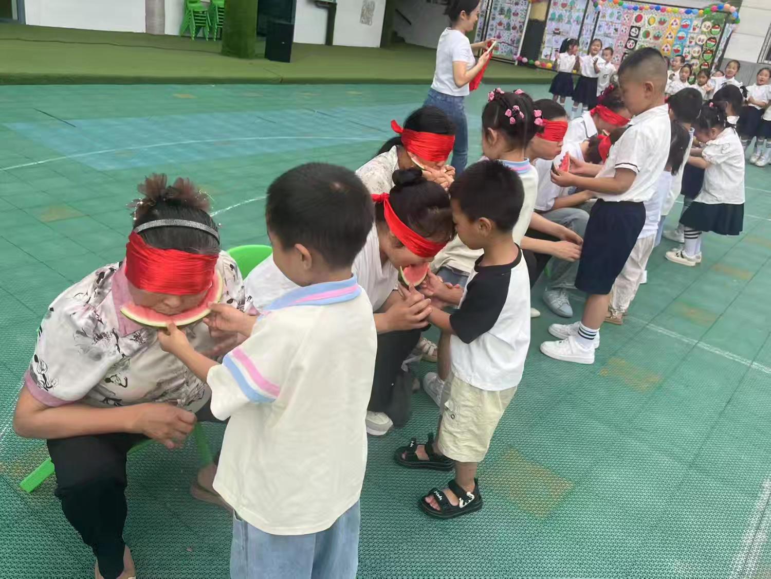最让孩子们期待的当属"西瓜分享会"。老师们将切好的西瓜摆成可爱的造型,家长和孩子们围坐成圈,你喂我一口,我喂你一口,清甜的汁水顺着嘴角流下来,连空气里都弥漫着幸福的味道。有的小朋友还主动把西瓜递给旁边的老师:"老师辛苦啦,请你吃西瓜!"