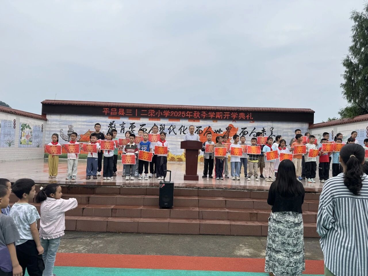在雨后初霁的清新氛围中,三十二梁小学全体师生满怀憧憬齐聚校园,共同迎来了2025年秋季开学典礼。这场别开生面的开学典礼,以其丰富的环节、真挚的寄语,为师生们开启了充满希望的新征程。
