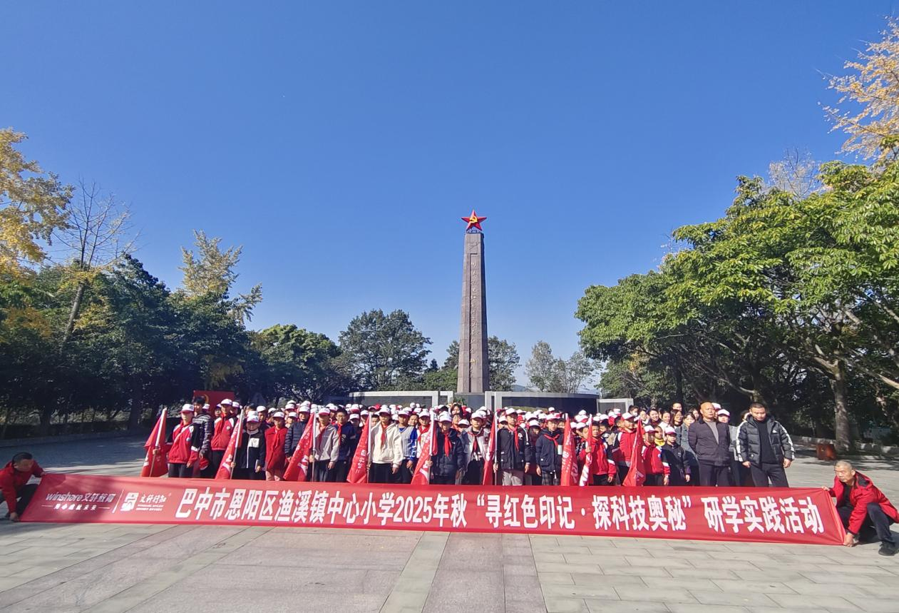 “嘀——”研学大巴的鸣笛声撞碎了11月清晨的凉雾,恩阳区渔溪小学的车厢里,欢呼像炸开的糖豆——今天,课本要“活”过来了!我们要把课堂种在红色热土上,开在科技星河里,让“长大”的答案,从行走的风里长出来!