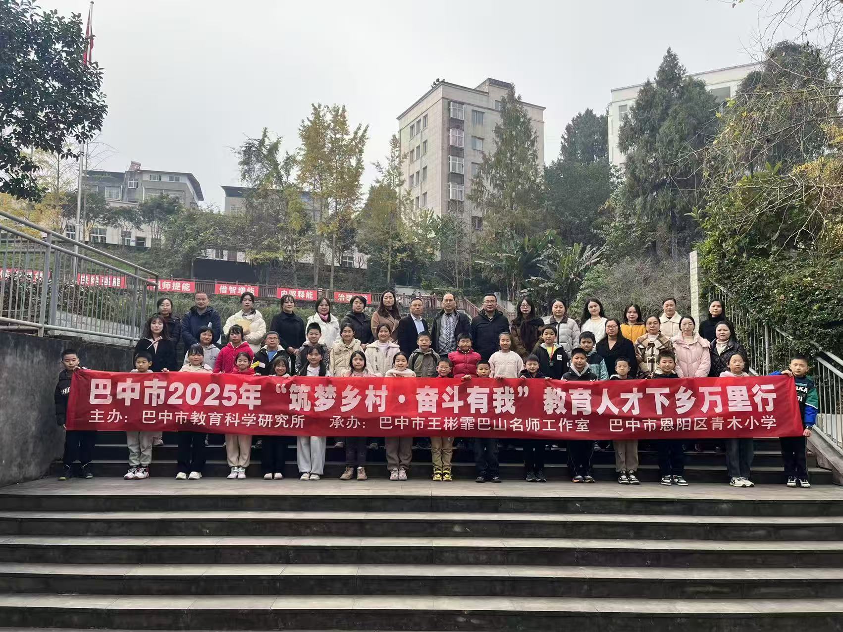 艺润乡土育新苗,情暖青木绽芳华。2025年11月28日,恩阳区青木小学迎来了一场艺术与教育交融的盛会。由巴中市教育科学研究所主办、王彬霏巴山名师工作室承办的"筑梦乡村·奋斗有我"教育人才下乡万里行活动在此隆重举行。