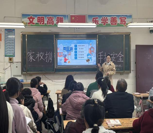 培训会分班召开,各班班主任围绕冬季安全核心要点,结合真实案例展开细致讲解。针对冬日低温特点,重点强调了防寒防冻的科学方法,提醒家长关注孩子外出保暖及室内取暖安全;针对家庭高频风险,详细演示了家庭防火的隐患排查技巧与初期火情处置流程,明确了防煤气中毒的通风要点及中毒后的急救步骤;同时,结合近期诈骗高发类型,拆解了针对家长群体的电信诈骗、校园周边诈骗套路,传授防骗准则;在交通安全板块,通过视频素材重申了上下学时段的路况风险,倡导家长以身作则遵守交通规则;最后,从自我保护角度出发,用温和易懂的语言讲解了防性侵的安全边界与求助方式,引导家长重视孩子的安全教育与心理疏导。